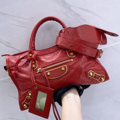 BALENCIAGA BAG 432831 METALLIC CITY 2WAY W/MIRROR RED