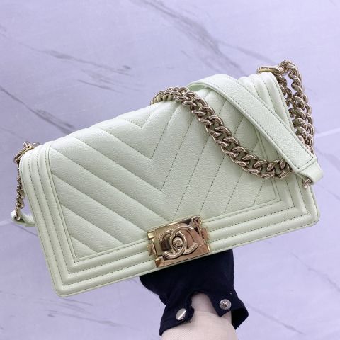 CHEVRON CAVIAR SKIN GHW 25CM MICROCHIP LIGHT GREEN