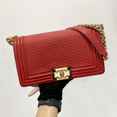 LAMBSKIN CUBE RED MEDIUM NO.18 CHAIN SHOULDER