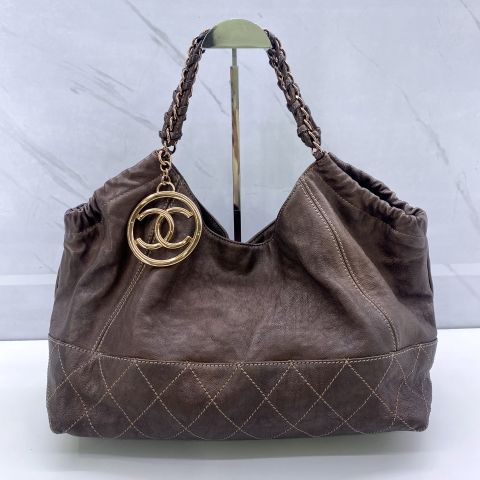 CALFSKIN BROWN NO.11 CHAIN TOTE W/CARD